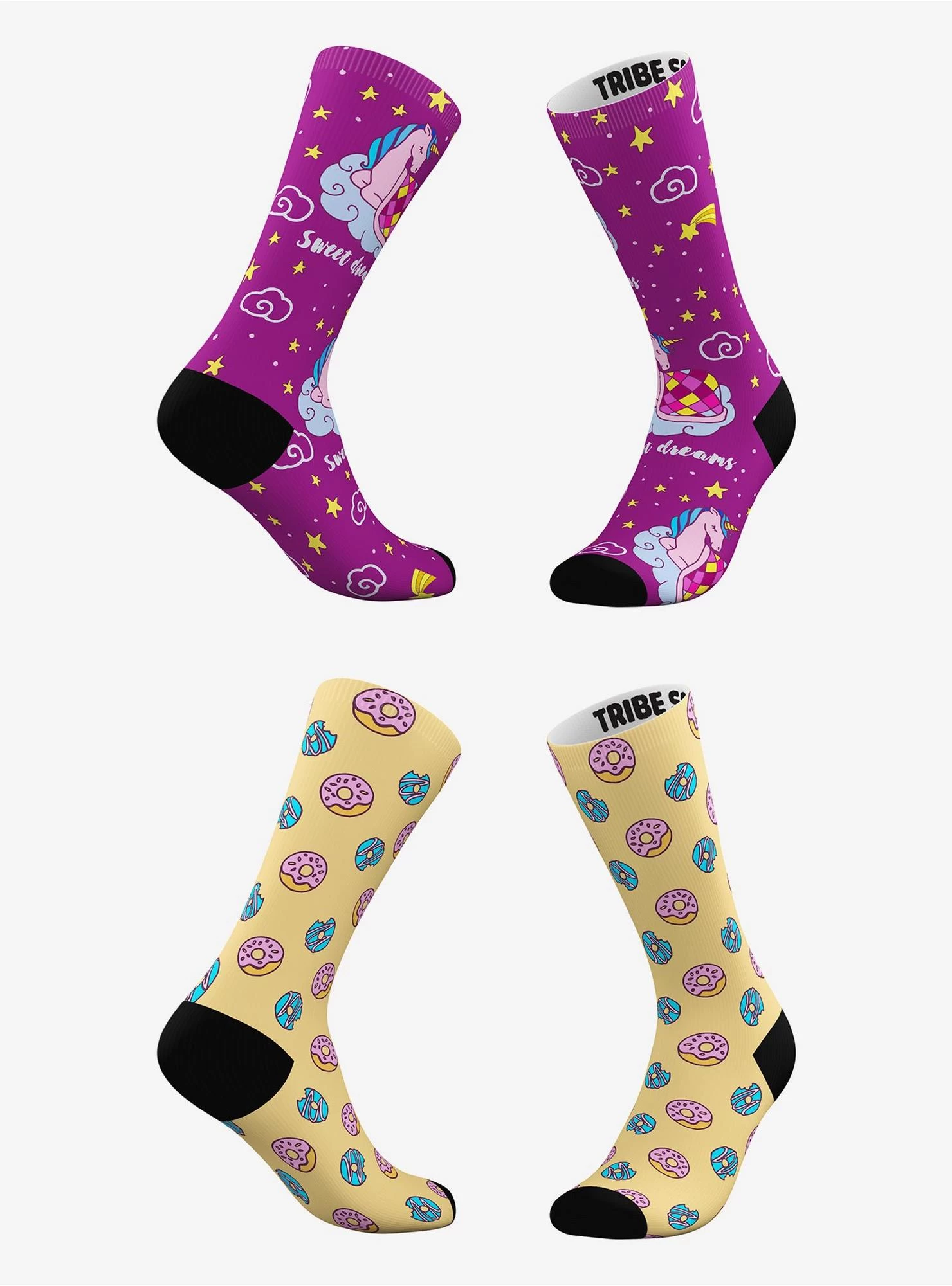 Sweet Dreams and Frosted Donuts Unicorn Socks 2 Pairs