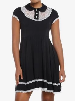Sweet Society Black & White Lace Bib Babydoll Dress