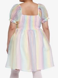 Sweet Society Pastel Rainbow Organza Tiered Dress Plus Size