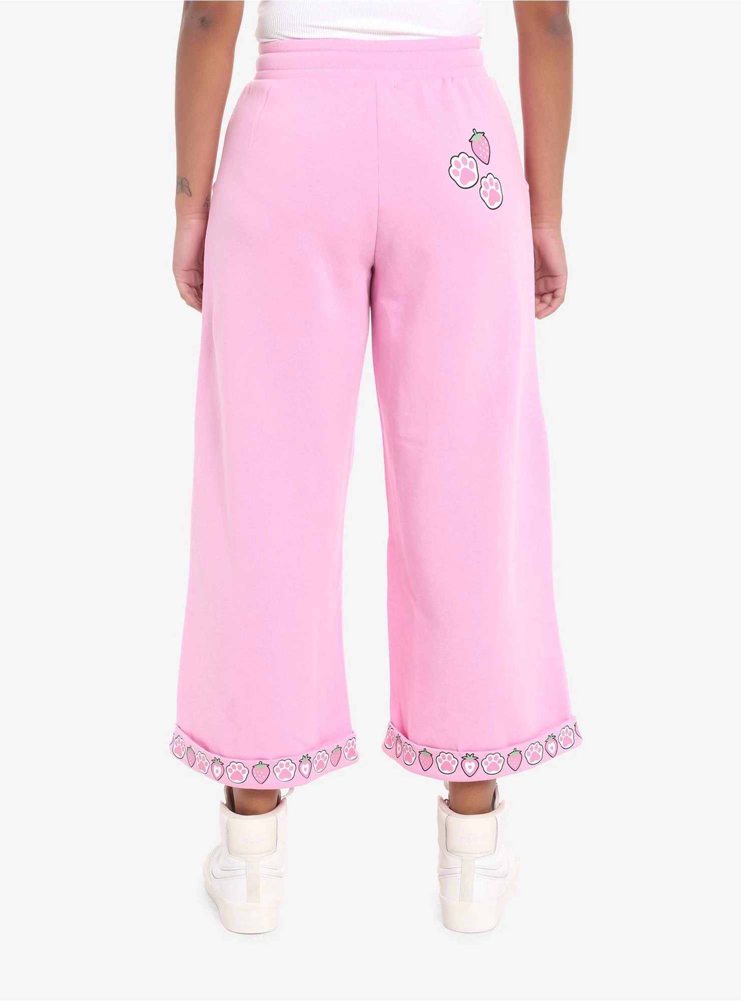 Had a long day? Jump into these cozy lounge pants right meow! They’re pink and feature chibi cats printed everywhere, plus rolled cuffs with paws and strawberries printed around. Comes with an elasticated, drawstring waistband and pockets.