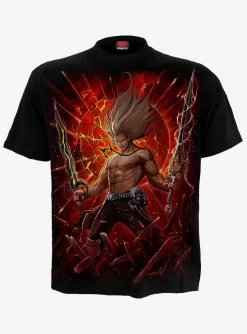 The battle has been long and arduous for this bruised and battered fighter. His wounds are not yet healing, but he must summon every galvanised fiber of his being to forge forward for one final showdown. T-Shirt Black is made of Top Quality 100% Cotton, Jersey using skin friendly, Azo-free, Reactive dyes.