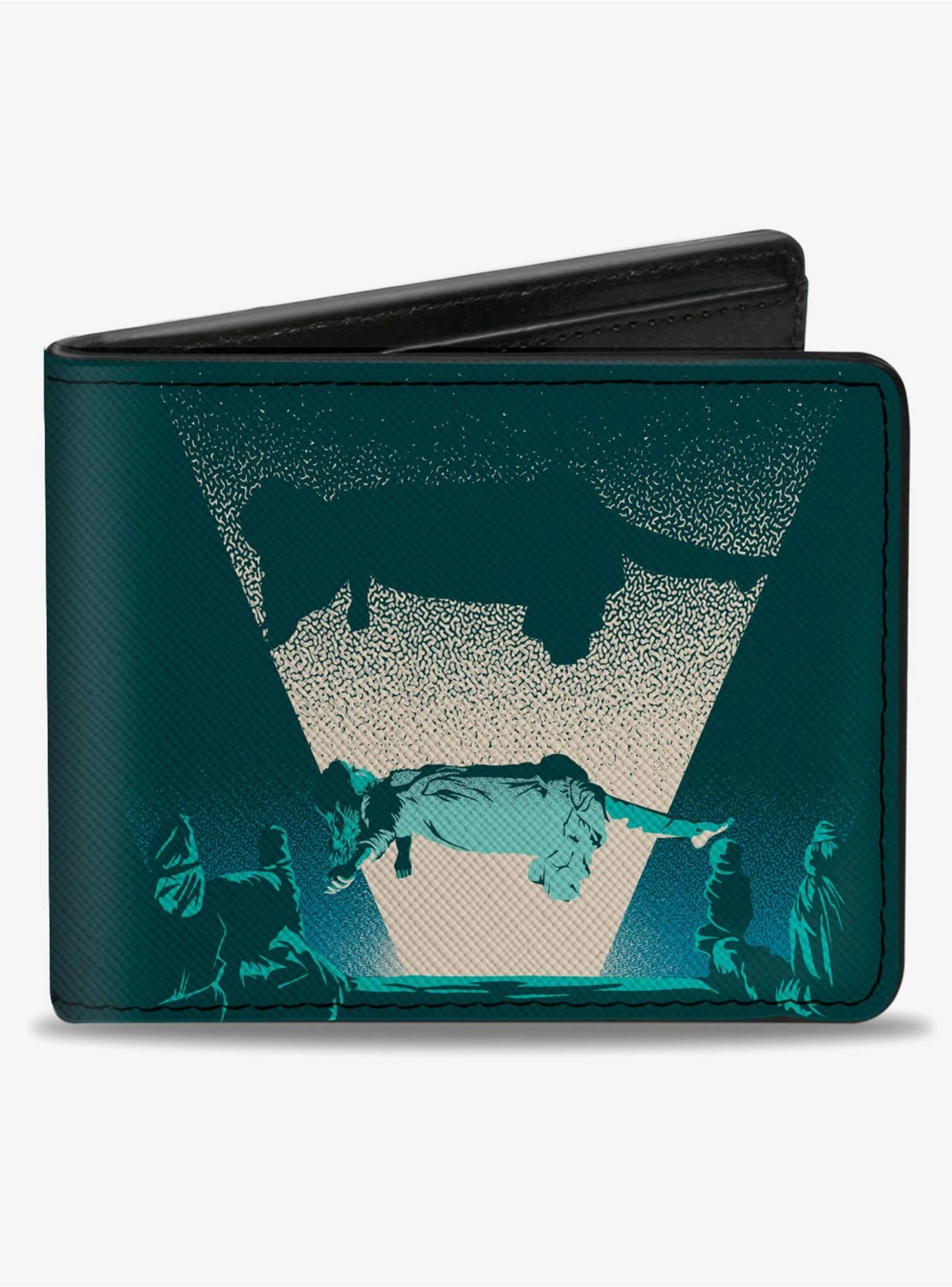 This awesome men’s bi-fold wallet is made from premium vegan leather. It measures 4.0×3.5×0.5 Inches, and features the standard billfold, 5 card slots, and windowed ID holder. The logos are applied using advanced printing technologies, so the wallet will still look good after years of hard use. This product is made by Buckle-Down, Inc. and Officially Licensed by Warner Bros.