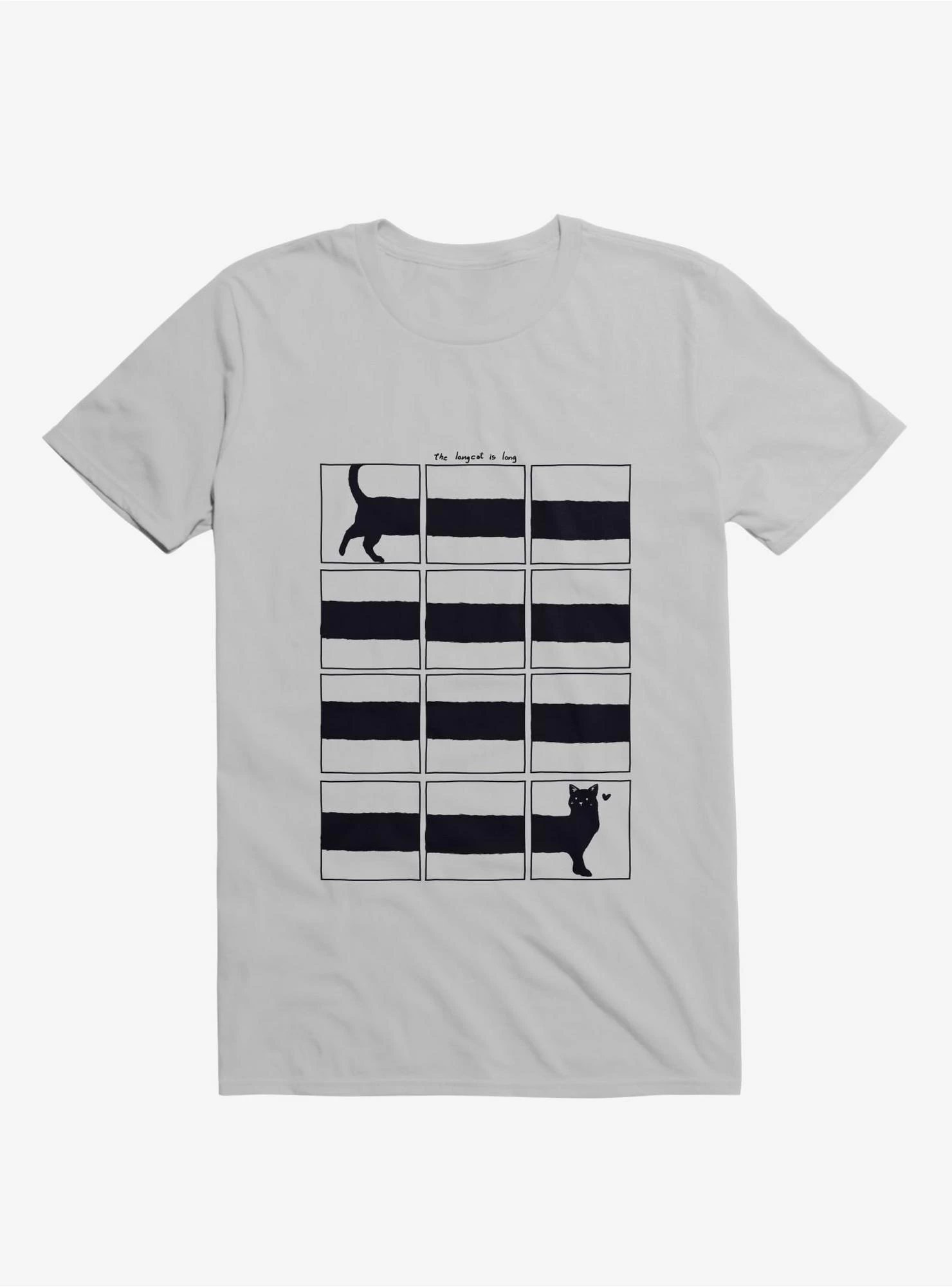 The longcat is long. How long? Twelve boxes long. This lightweight ice grey graphic tee has a helpful design which shows you how long this cat really is.