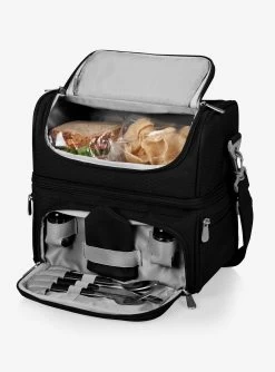 Keep your lunch as cold and lovely as Christmas Town. This lunch tote from The Nightmare Before Christmas is perfect for a picnic or simply carrying your lunch to the office, and includes all utensils for enjoying your meal. Insulated with separate hot and cold compartments with an 8-can capacity, and includes a napkin, flatware, and salt and pepper shakers. This lunch tote also features zippered side mesh pockets on each side, a hidden flatware section, adjustable shoulder strap and a soft grip top handle.
