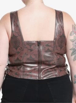 It’s time to face your destiny. From The Witcher, this faux leather bustier is inspired by Ciri. It has a cropped fit and features allover filigree designs along with her swallow symbol. Comes with lace-up detailing on the sides and a back zipper closure.