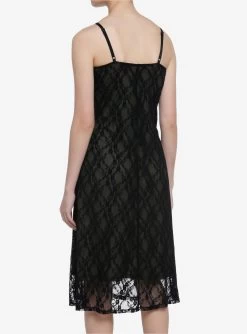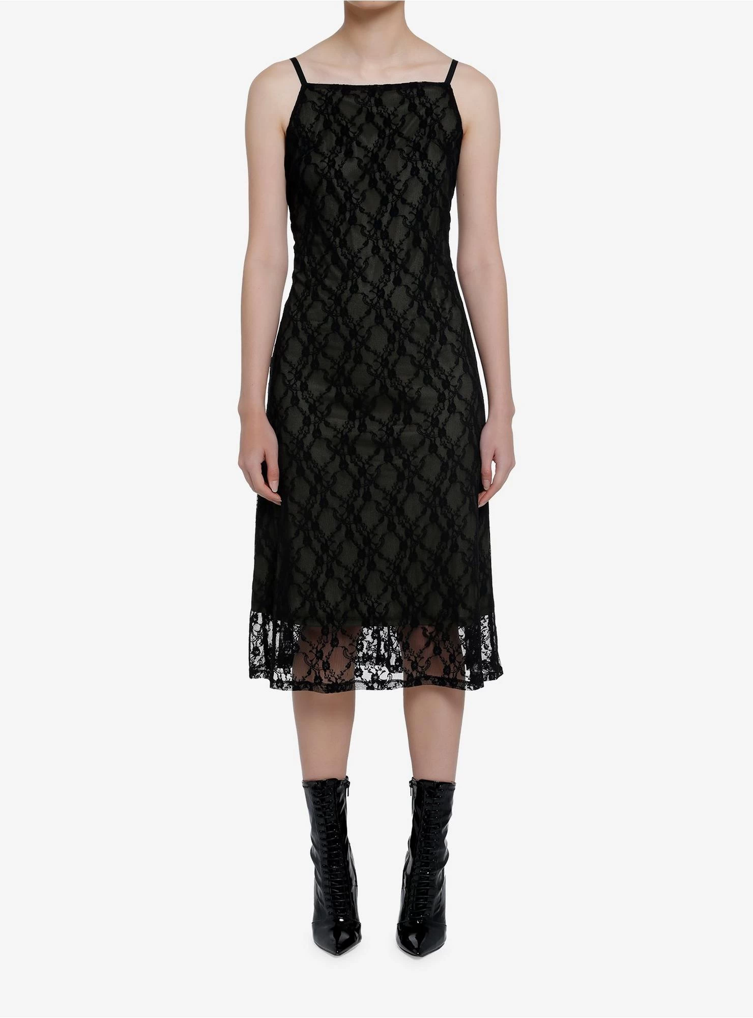 Thorn & Fable Black & Sage Lace Midi Slip Dress