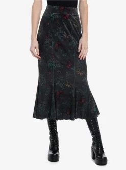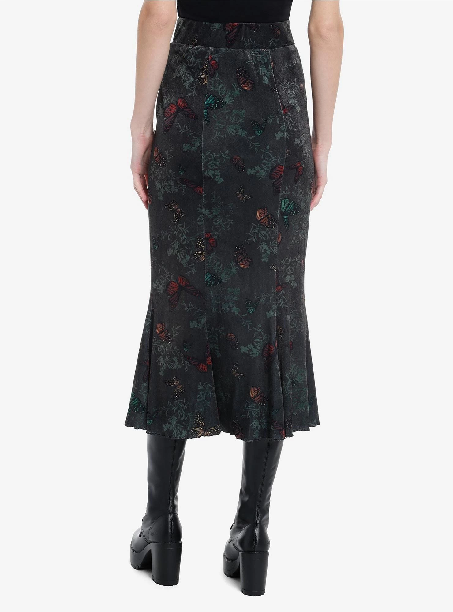 Thorn & Fable Butterfly Velvet Mermaid Midi Skirt