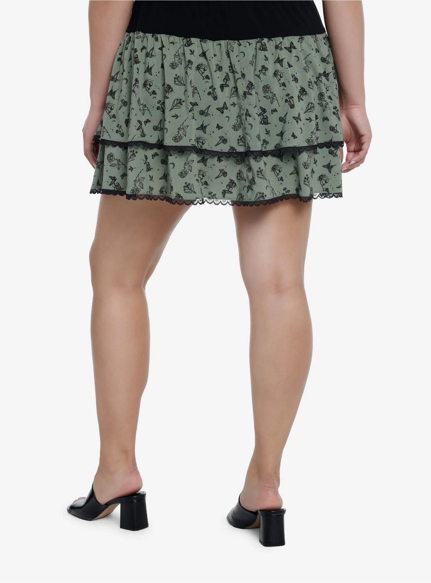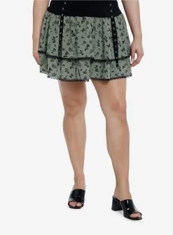 Thorn & Fable Green Butterfly Mushroom Tiered Skirt Plus Size