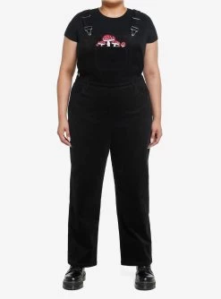 Thorn & Fable Mushroom Embroidered Corduroy Girls Overalls Plus Size