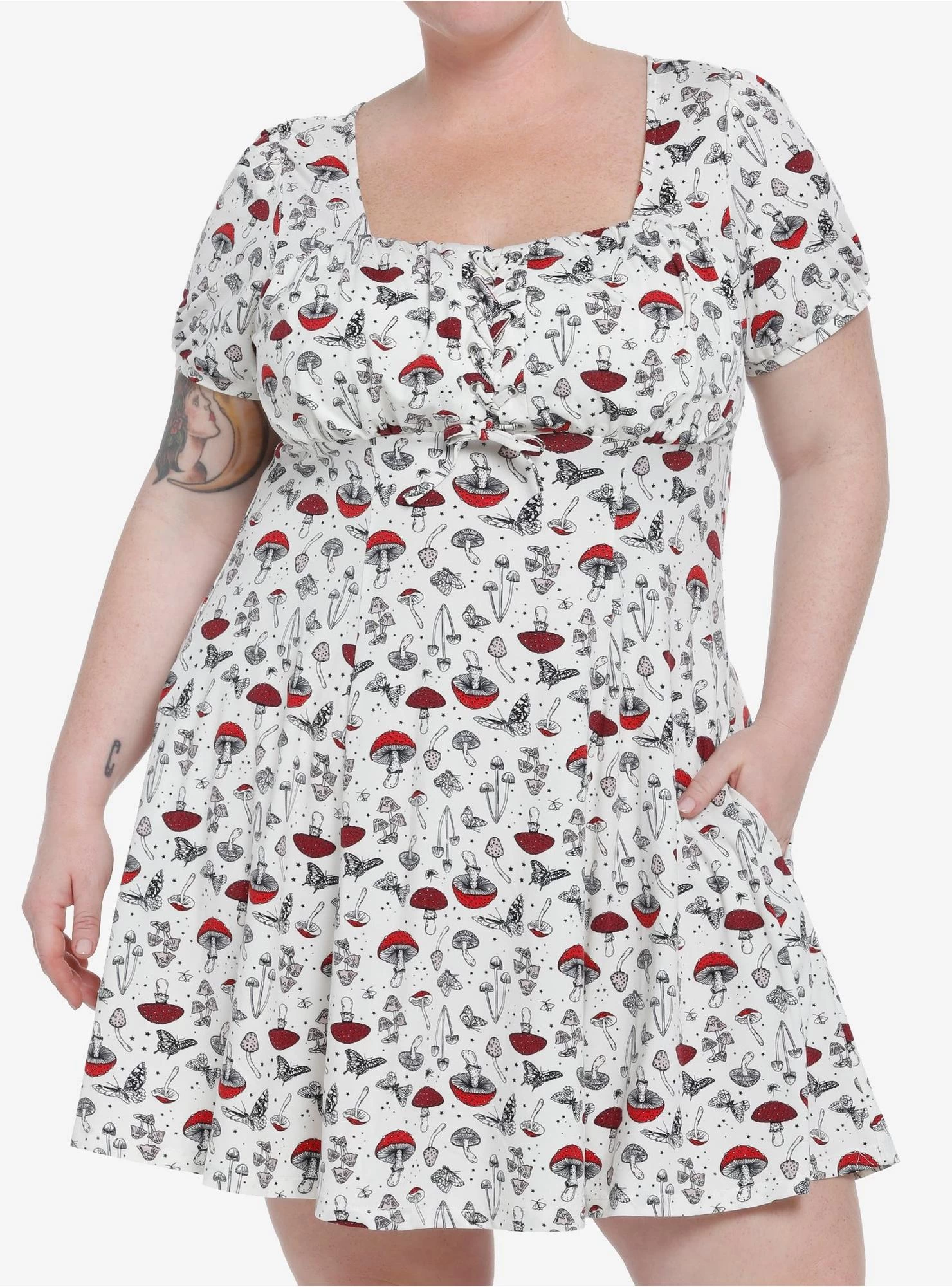 Thorn & Fable Mushrooms Babydoll Dress Plus Size