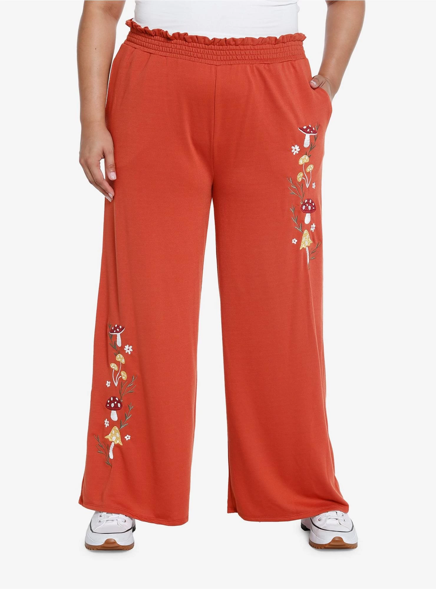 Thorn & Fable Mushrooms & Flowers Embroidered Wide Leg Pants Plus Size