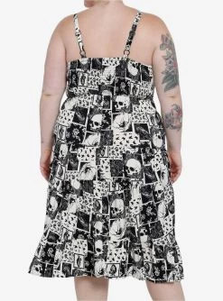 Thorn & Fable Skull Raven Patchwork Midi Dress Plus size