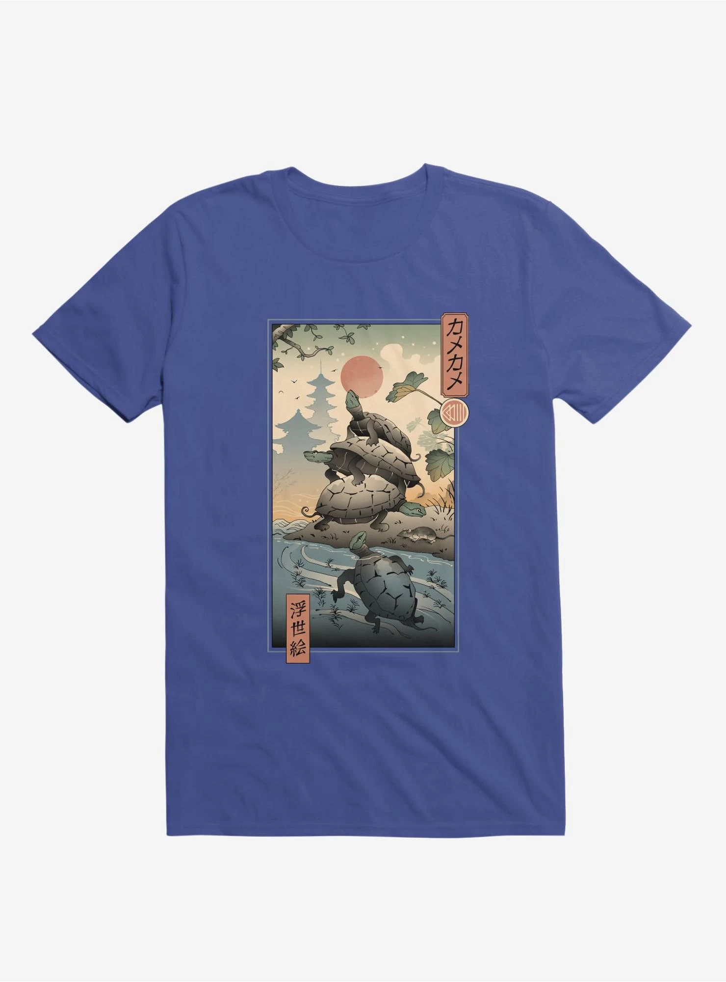 Turtle Stream Kame Kame Ukiyo-e Royal Blue T-Shirt