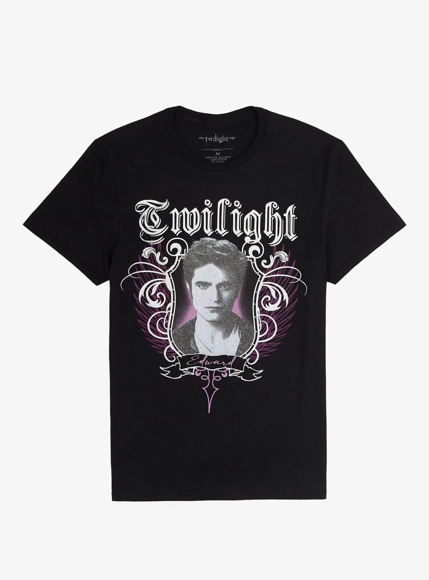 Sparkle brighter than a vampire under the sun with this Twilight tee on! Dazzle while showing off that you’re Team Edward in this tee, featuring a framed portrait of Edward Cullen with glitter over his face.