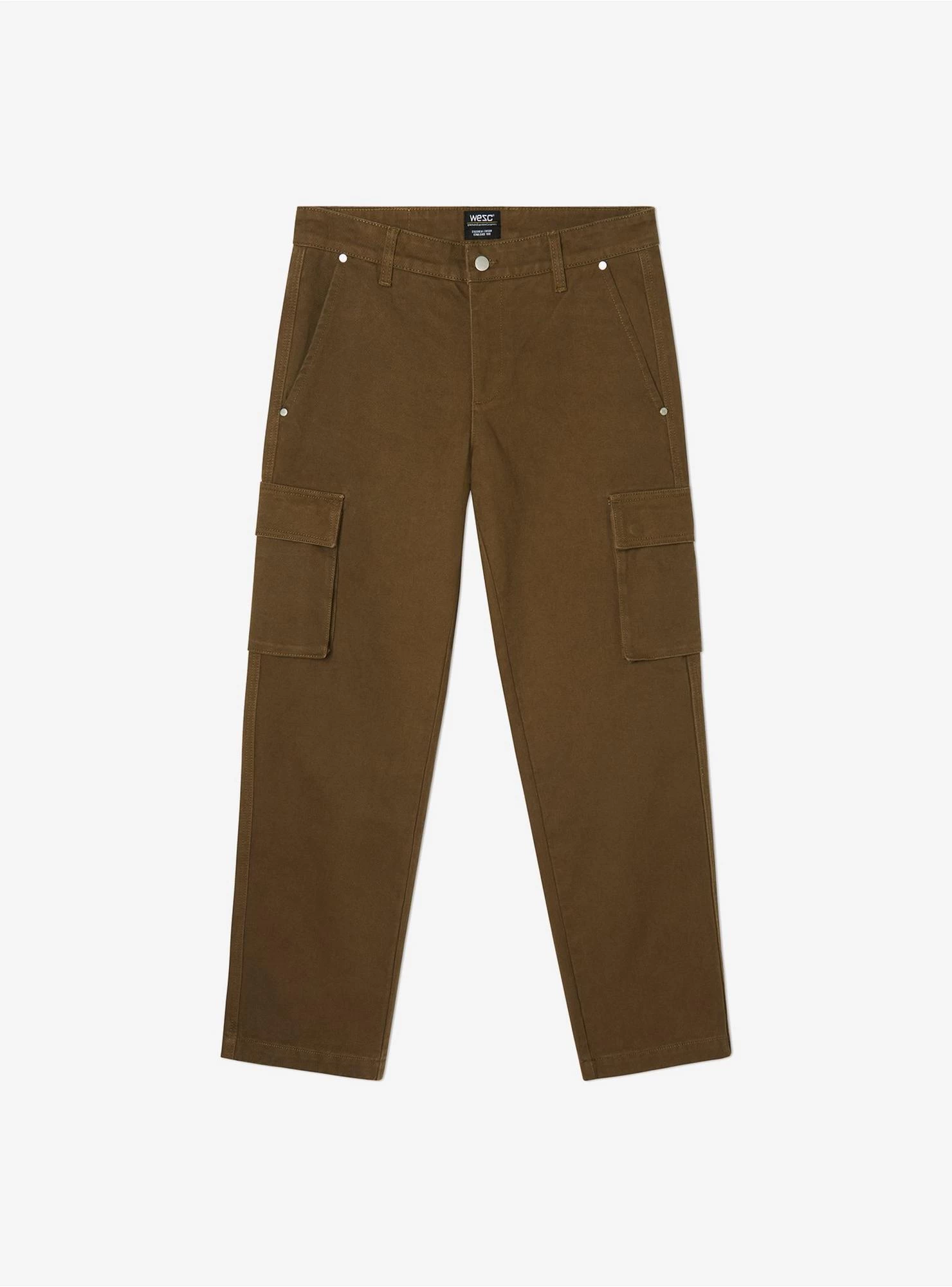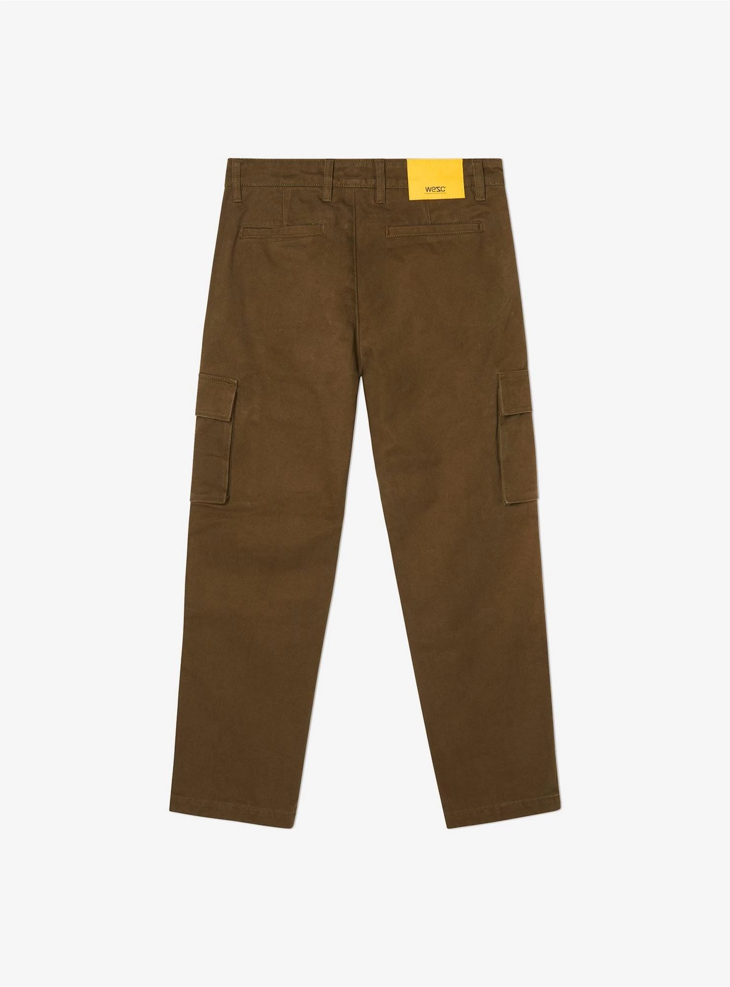 Be ready for your next adventure in these stylish, relaxed fit cargo pants. Featuring a zip fly closure, cargo side pockets with snap closure, front slant pockets, and welt back pockets, you have plenty of room to store all of your essential items. Plus, a WeSC yellow denim back patch at the waistband adds a touch of classic style.