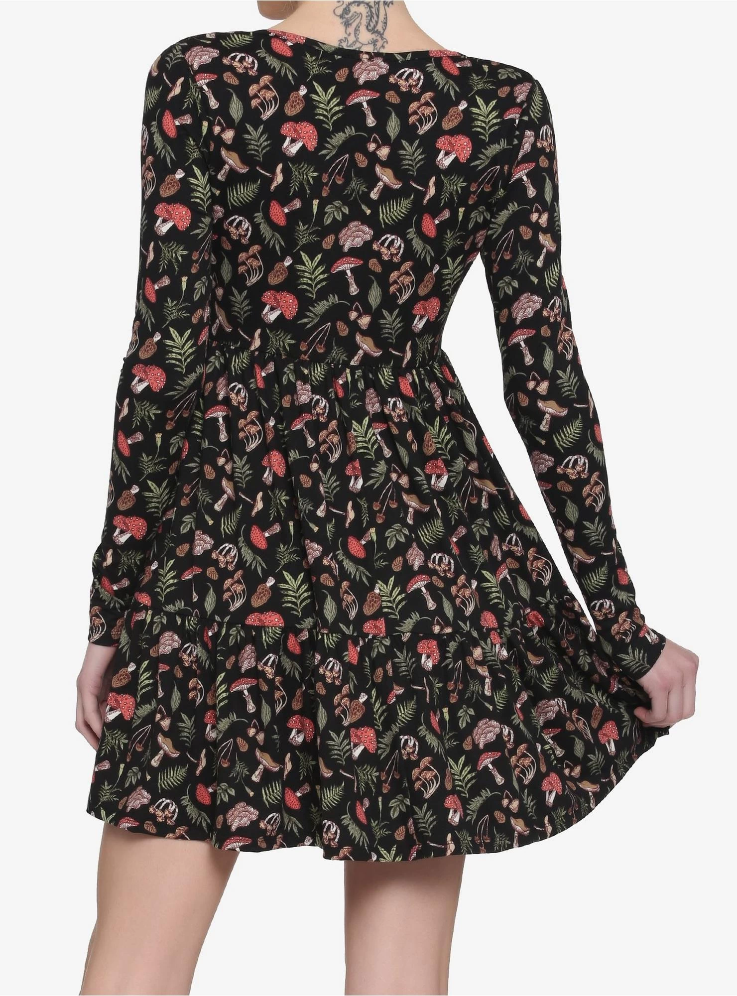 Woodland Mushroom Tiered Long-Sleeve Dress